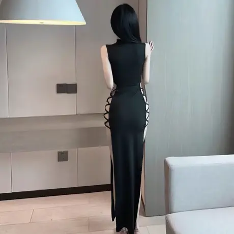 サイドを大胆に編み上げたデザインが、女性らしい曲線美を際立たせるロングドレス。